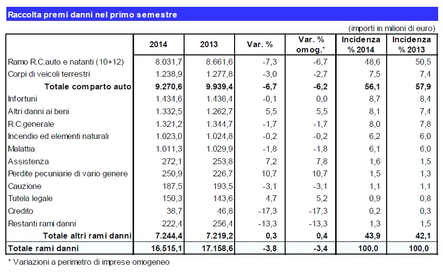 La diminuzione complessiva, rispetto all’analogo periodo del 2013, è stata pari al 3,8%.