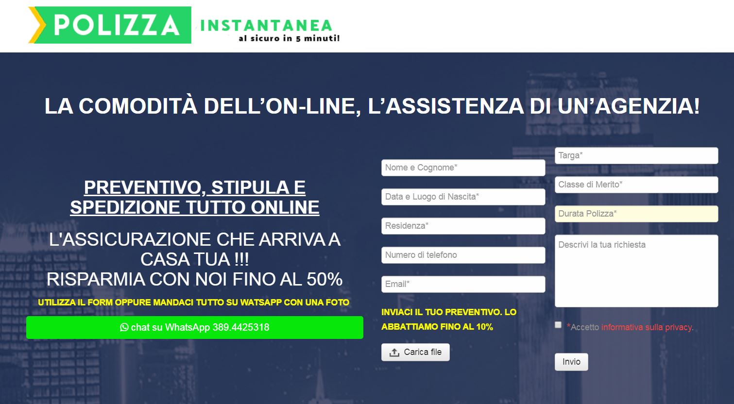 L’Ivass ha segnalato il portale www.polizzaistantanea.it. Vende polizze false.