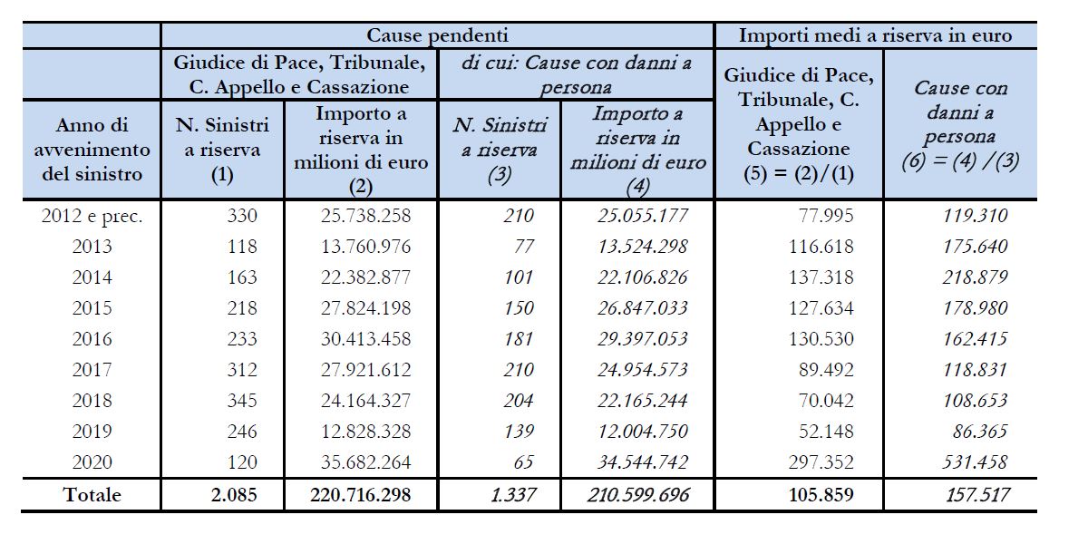 Le cause penali pendenti nei diversi gradi di giudizio sono state 2.085. I numeri dell’Ivass.