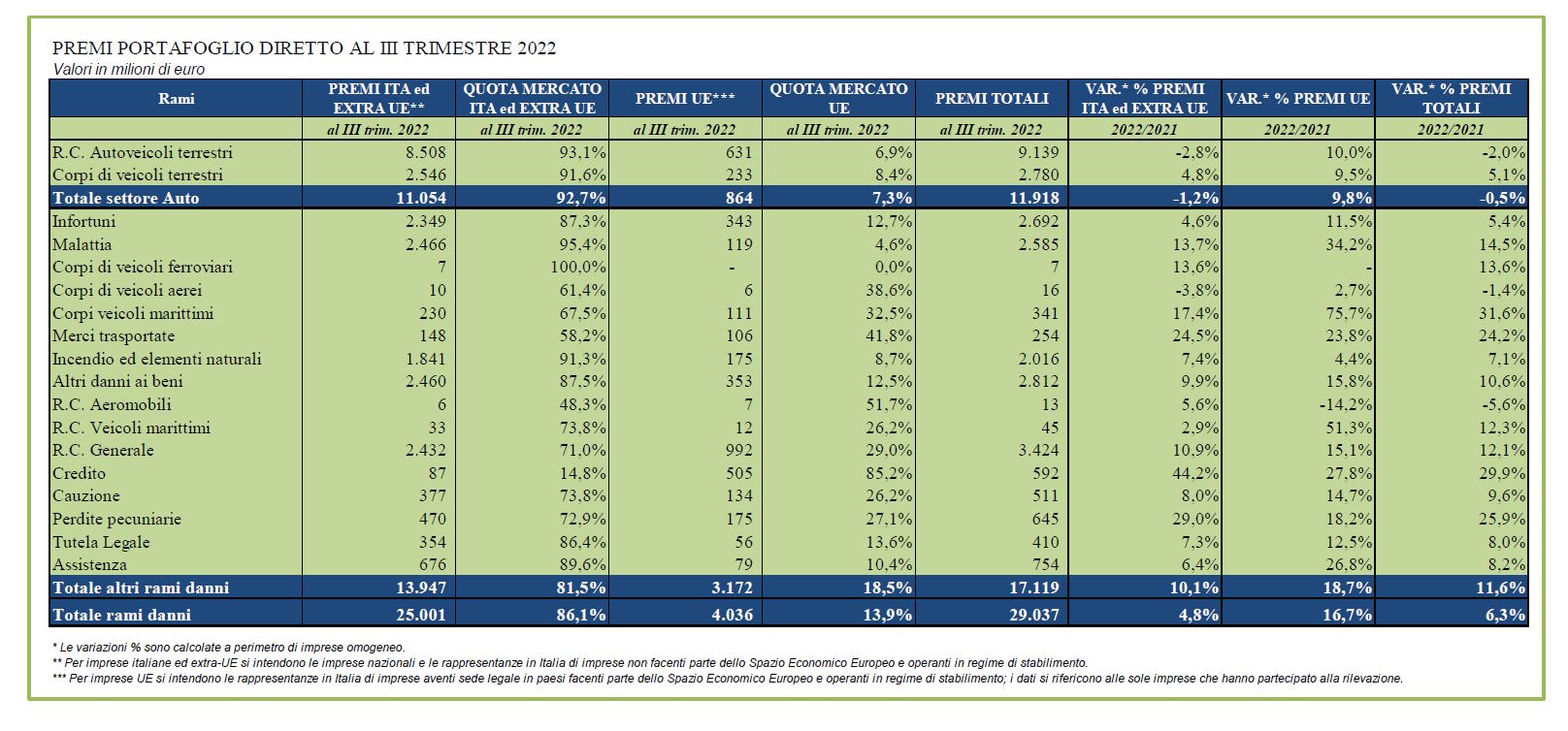 Il confronto è con lo stesso periodo dell’anno scorso. Ancora record per il non auto (+11,6%). Rc auto a -2% e Cvt a +5,1%.