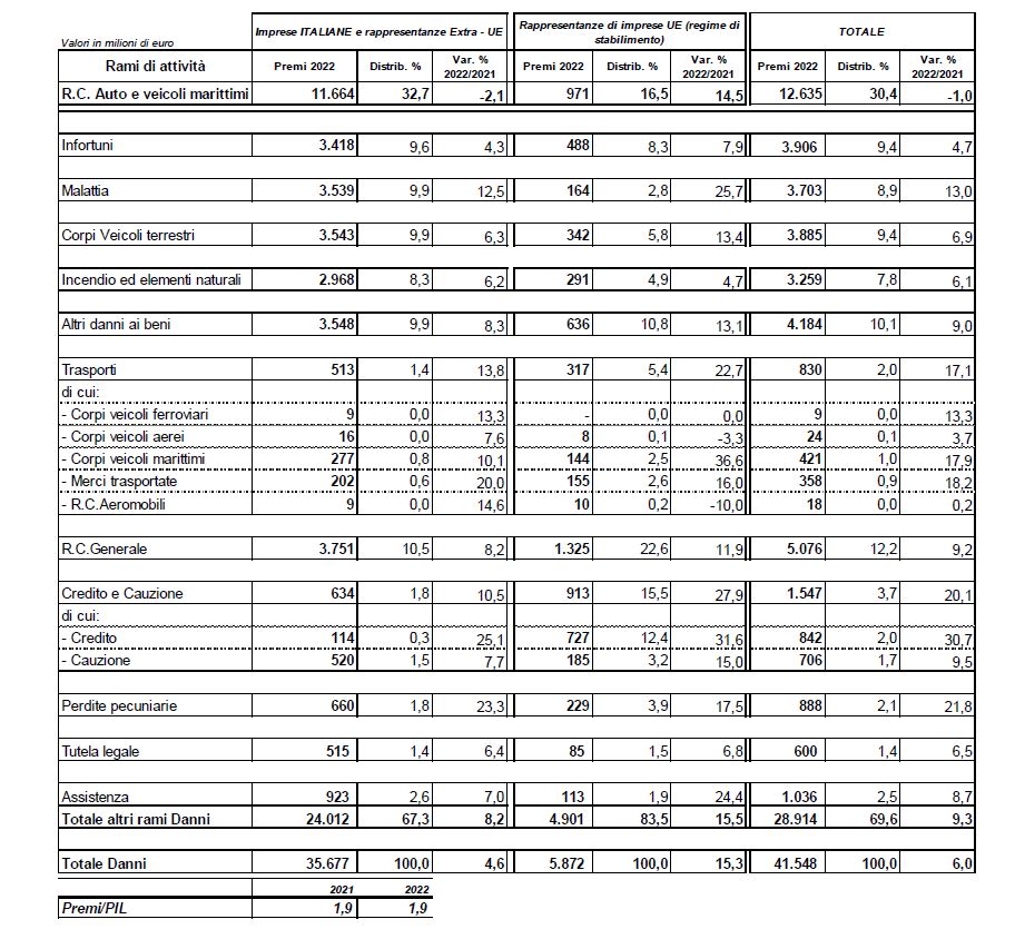 L’aumento, rispetto all’anno precedente, è stato del 4,6% a 35,7 miliardi di euro. I dati provvisori dell’Ania.
