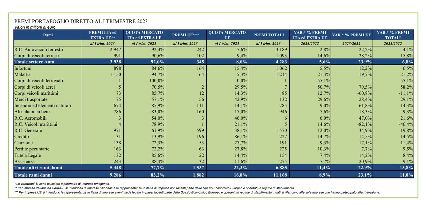 Il trend positivo è legato, in particolare, allo sviluppo del settore non auto che ha registrato una variazione positiva di circa il 14%; in crescita (+6,8%) anche i premi auto (Cvt +15,8%, Rc auto +4,1%).