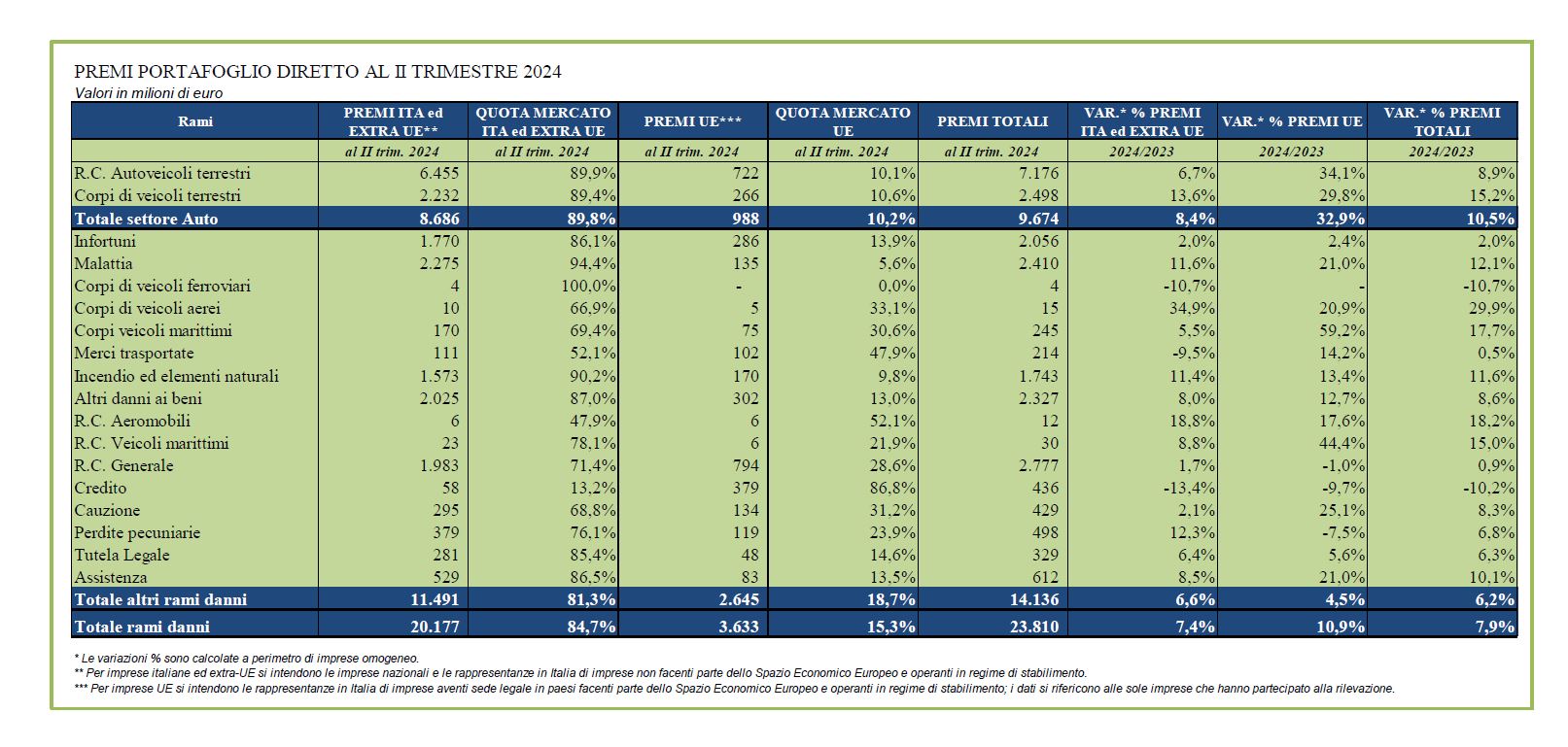 Secondo i dati resi noti dall’Ania si tratta della 14esima variazione trimestrale positiva consecutiva che ha portato la raccolta a sfiorare per la prima volta i 24 miliardi di euro nei primi sei mesi dell’anno.