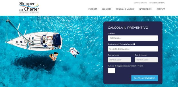 Un nuovo portale assicurativo (www.skipperandcharter.it) specializzato nell’offerta di polizze viaggio dedicate agli appassionati di vacanze in barca. Skipper and Charter si rivolge a chi noleggia un’imbarcazione (sia a vela, sia a motore) e il servizio è disponibile anche per le società di charter nautico, gli armatori, le piattaforme on line, i tour operator e le agenzie di viaggio.