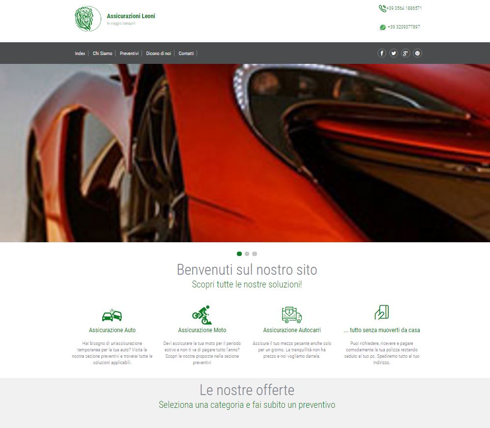 Il sito propone polizze auto, moto, autocarri e indica come denominazione la società Assicurazioni Leoni (che opera dal 1993 come agenzia assicurativa plurimandataria) con sede in corso Giosuè Carducci 43 a Grosseto (telefono 0564-1886571, cellulare 320-9377897).