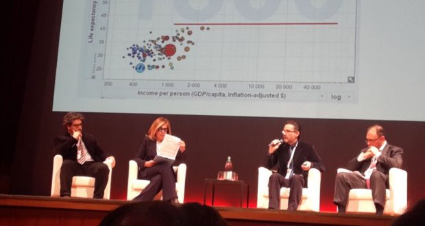 L’ultima parte della mattinata è stata dedicata a una tavola rotonda (foto sotto) dal titolo Il futuro che (non) c’è, come costruire un domani migliore, a cui hanno preso parte Alessandro Rosina, professore universitario di demografia e statistica sociale presso la Facoltà di Economia dell’Università Cattolica di Milano, Sergio Sorgi, sociologo, socio fondatore e vicepresidente di Progetica e Vittorio Pelligra, professore associato di politica economica presso il dipartimento di Scienze Economiche e Aziendali dell’Università di Cagliari. I tre, moderati da Latella, hanno espresso la propria opinione (suffragata da studi e analisi) su temi come i cambiamenti nella vita economica delle famiglie, l’educazione finanziaria (argomento, peraltro, citato anche da Fornero), la politica economica riferita al mondo del lavoro, il rapporto fra generazioni, l’invecchiamento della popolazione, le previsioni a livello demografico (in Italia e nel mondo), il welfare.
