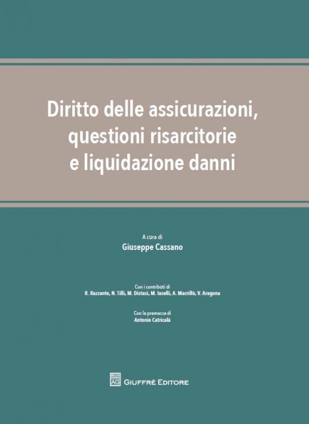 Un approfondimento della materia assicurativa sia con riferimento all’attività delle imprese assicurative, sia a ogni questione attinente alla “genesi” e alla “vita” delle polizze. È il volume Diritto delle assicurazioni, questioni risarcitorie e liquidazione danni (Giuffrè Editore, 1.400 pagine), edizione 2017, a cura di Giuseppe Cassano (direttore del dipartimento di scienze giuridiche della European school of economics di Roma e Milano, avvocato cassazionista, già docente di istituzioni di diritto privato presso l’Università Luiss di Roma), con i contributi di Ranieri Razzante, Nicola Tilli, Marcello Nunzio Distasi, Michele Iaselli, Armando Macrillò e Valentina Aragona, e con la premessa di Antonio Catricalà.