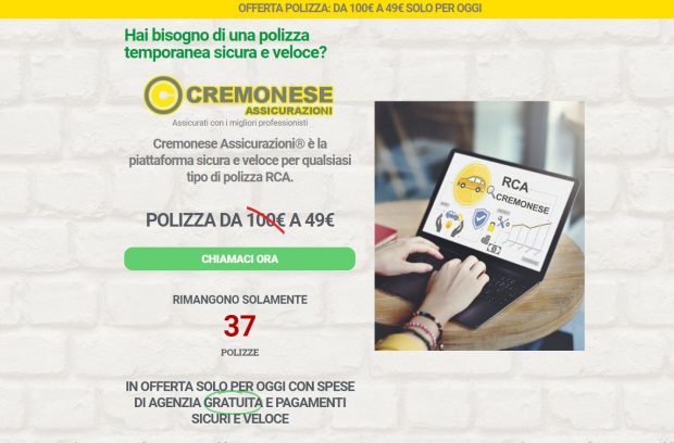 Il sito, in particolare, cerca di catturare l’attenzione dell’ignaro cliente offrendo uno sconto in polizza che va da 100 euro a 49 euro «solo per oggi», riportando una sorta di conteggio prima che la stessa offerta possa scadere. Sempre sul sito si precisa che le spese di agenzia sono «gratuite» e i pagamenti «sicuri e veloci».