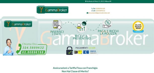 Il sito fa riferimento alla società, inesistente nel Rui, Gamma Broker (uffici in via Monte di Pietà 21 a Milano), marchio di Gamma Spa, telefono 02-80896168, cellulare 324-5889632, e-mail documenti@gammabroker.net.