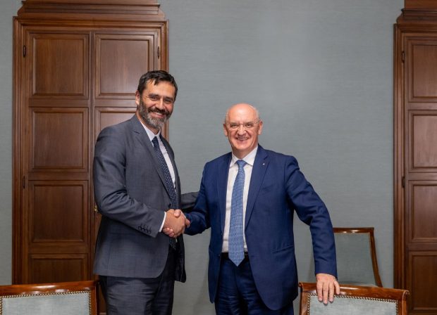 Da sinistra, Pierre Cordier, amministratore delegato e direttore generale di Groupama Assicurazioni e Carlo Demartini, amministratore delegato e direttore generale di Banca di Asti