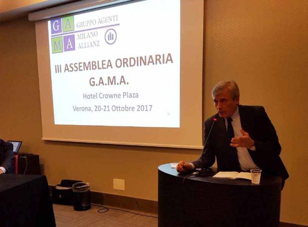 Redditività delle agenzie, catalogo prodotti, autonomia agenziale e flessibilità assuntiva, digital e rischio disintermediazione, collaborazione fra gruppi agenti. Sono gli aspetti evidenziati nella mozione finale (approvata all’unanimità) elaborata dal Gruppo agenti Milano Allianz (Gama), che si è riunito alla fine della settimana scorsa a Verona, nell’ambito della terza assemblea ordinaria, per fare il punto della situazione. Si è trattato di un’assemblea di medio termine, dopo la conferma, alla fine dell’anno scorso, di Dario Piana alla presidenza del gruppo. (Nella foto a lato, Piana. Sotto, un momento dell’assemblea di Verona)
