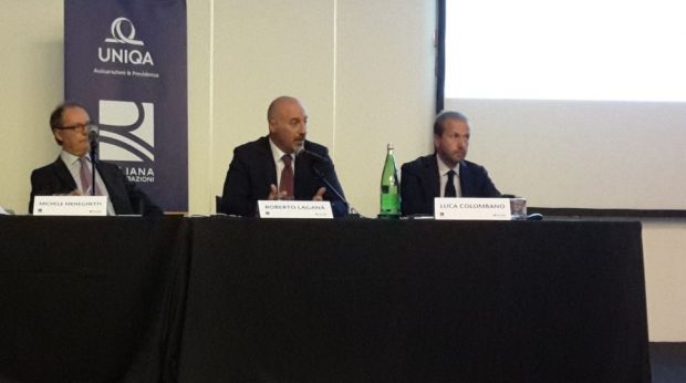 Durante le tappe del roadshow sono stati illustrati i numeri di Reale Group (12 società in tutto, presente in tre paesi e in due continenti diversi) e di Italiana Assicurazioni. Quest’ultima conta 665.000 clienti assicurati, 352 agenzie, 461 dipendenti, 27,8 milioni di euro di risultato netto nel 2016 e solvency ratio del 280%, un indice di soddisfazione dei clienti pari al 98,6% e un 86% degli agenti di Italiana che si dichiara soddisfatto. Altro dato: il 94,4% dei clienti si dice soddisfatto della gestione dei sinistri da parte della compagnia. (Nella foto a lato, da sinistra, Michele Meneghetti, amministratore delgato di Uniqa, Roberto Laganà e Luca Colombano, direttore centrale commerciale e mercato di Italiana Assicurazioni. La tappa del roadshow è quella di Milano)