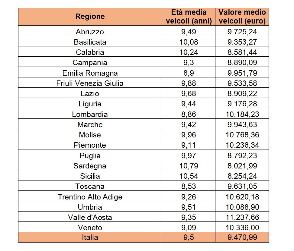 Analizzando i risultati è emerso come nel Sud Italia l’età media dei veicoli superi i 10 anni, ma è soprattutto nelle isole maggiori e in Calabria che il dato si fa preoccupante con auto che raggiungono i 10 anni e 9 mesi in Sardegna, 10 e 7 mesi in Sicilia e 10 anni e 3 mesi in Calabria.