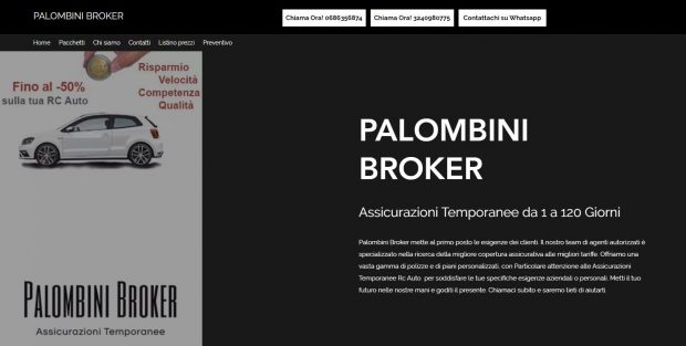«Palombini Broker mette al primo posto le esigenze dei clienti. Il nostro team di agenti autorizzati è specializzato nella ricerca della migliore copertura assicurativa alle migliori tariffe. Offriamo una vasta gamma di polizze e di piani personalizzati, con particolare attenzione alle assicurazioni temporanee Rc auto  per soddisfare le tue specifiche esigenze aziendali o personali. Metti il tuo futuro nelle nostre mani e goditi il presente. Chiamaci subito e saremo lieti di aiutarti». È il messaggio di benvenuto riportato nella home page del sito www.palombinibroker.com, che però è stato segnalato dall’Ivass per la sua attività di intermediazione svolta in modo irregolare.