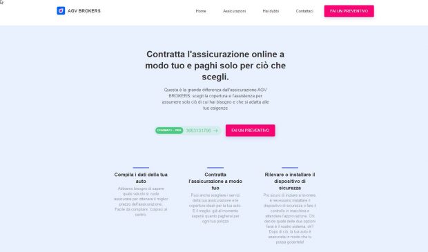 Leader da oltre 20 anni. Così si presenta la piattaforma di vendita assicurativa on line Agv Brokers (che fa riferimento alla società fantasma Agv Brokers Holding spa) che, secondo quanto sottolineato dall’Ivass, distribuisce on line polizze assicurative false attraverso il sito www.agv-brokers.com.