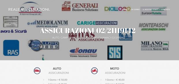 Nella home page sono riportati anche i loghi, fra l’altro, di ConTe.it, Generali Business Solutions, Itas Assicurazioni, Donau e di compagnie non più esistenti. Il portale è stato segnalato dall’Ivass.