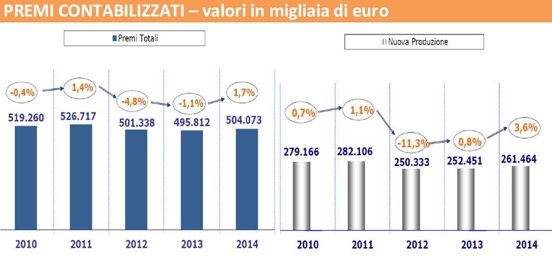 Al 31 dicembre dello scorso anno tornano a crescere i premi contabilizzati. Non succedeva dalla fine del 2011.