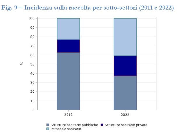La diminuzione forte della raccolta presso le strutture sanitarie pubbliche ha condizionato in modo significativo il trend. E ora la distribuzione dei sotto-settori vede…