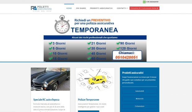 La storia riportata sul sito www.polettiassicurazioni.com (sezione “chi siamo”) è anche bella, peccato che nel Rui non figurano né Salvatore Poletti, né la relativa società, e peccato che il sito in questione è stato segnalato dall’Ivass perché distribuisce polizze false.