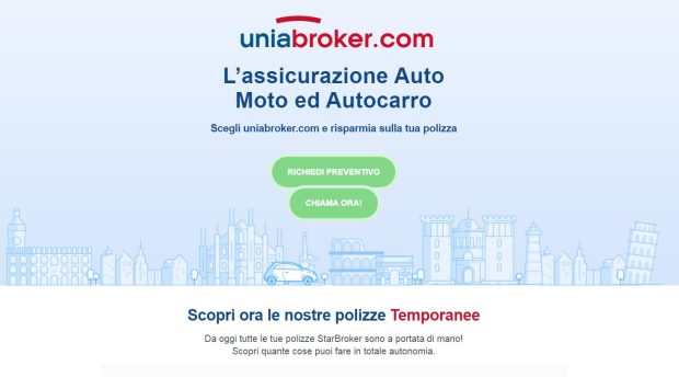 Una realtà italiana con una visione internazionale, con oltre 7.000 dipendenti e più di 5 milioni di clienti in tutto il mondo. Si presenta così Unia Broker srl, che attraverso il portale www.uniabroker.com distribuisce polizze temporanee Rc auto, moto e autocarri.
